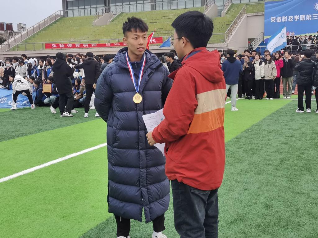 个人简介:曹震,男,汉族,安徽科技学院动物科学学院动植物检疫专业2020级学生。曾获得安徽省第十五届运动会跳远第六名 ,4x100米第五名 ,100米第四名 ,4x400米第二名。在中国高等农业院校华东区第十六届大学生田径运动会中以电子计时10秒89获男子100米冠军,预决赛打破校记录,是我校第一位达到国家一级运动员标准的大学生,开创了校男子100米的10秒时代,并获得男子甲组跳远第四名的好成绩。曾在中国高等农业院校第十届大学生田径运动会中获得100米第一名 ,4x400米第二名 ,跳远第五名的优异成绩。