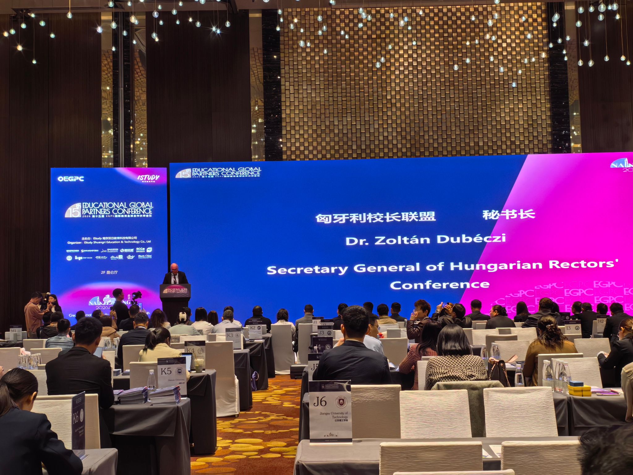4月16日至17日,我校国际教育学院赴南京参加第十五届EGPC全球教育合作伙伴会议,开展国际学生招生宣传。此次会议共有来自匈牙利、哈萨克斯坦、蒙古、泰国、摩洛哥等40余国代表团及100余所中国院校参会。匈牙利校长委员会秘书长、哈萨克斯坦驻华大使馆教育参赞等出席开幕式并致辞。