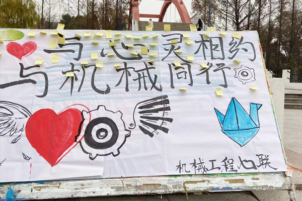 为丰富校园文化生活,推动大学生心理健康教育工作,普及心理健康知识,促进大学生全面协调发展,机械工程学院于12月15日,开展了“12·15心理健康活动月”系列活动之线下“与心灵相约 你我同行 健康成长”主题宣传活动。活动期间,心联成员及2021级部分同学制作宣传展板。