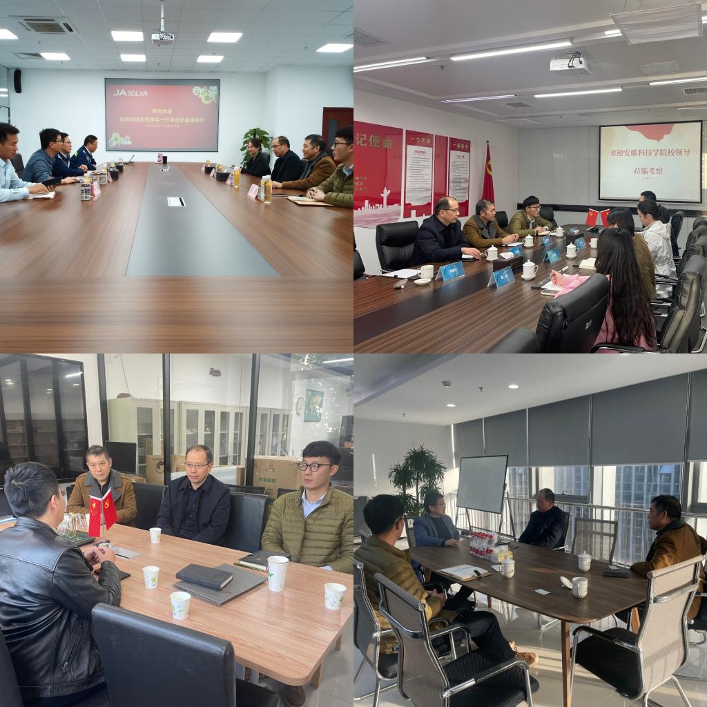 黄树桥、丁景良调研组一行先后来到安徽智能软件园、安徽艺立恒科技有限公司、合肥晶澳太阳能、安徽玉臻科技集团等4家企业,校企交谈中,黄树桥和丁景良分别向企业负责人介绍了学校办学基本情况及所在学院师资力量、专业设置、人才培养、校企合作等情况,4家企业高度认可安徽科技学院毕业生质量,表达了将进一步加强与院方合作意愿。宾主双方还围绕“一体化”推动毕业生实习就业及校友企业捐赠事宜开展了交流。访企期间,调研组一行在企业有关人员的陪同下,参观了垂直一体化产业车间、产品生产组建流程等,了解了企业的生产环境和发展情况。