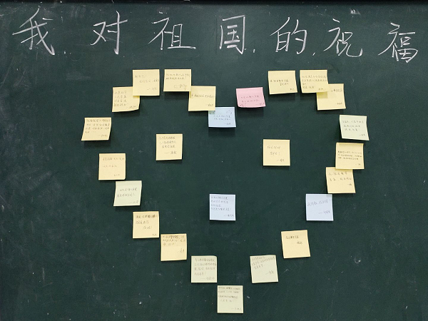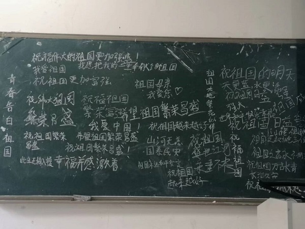动物科学193团支部在新知楼A106召开以“祖国,我爱你”为主题的团日活动,通过观看爱国视频,视频中讲述了中国人民在面对新冠肺炎时齐心抗疫的故事,看完视频后,同学们纷纷拿出纸笔,把对祖国的祝福写在纸上,并贴在黑板上摆出“心形”,以表达自己的爱国之情,一封封当代青年的告白信,充分展现同学们与祖国共同进步、与时代共同奋进的爱国主义情怀。
