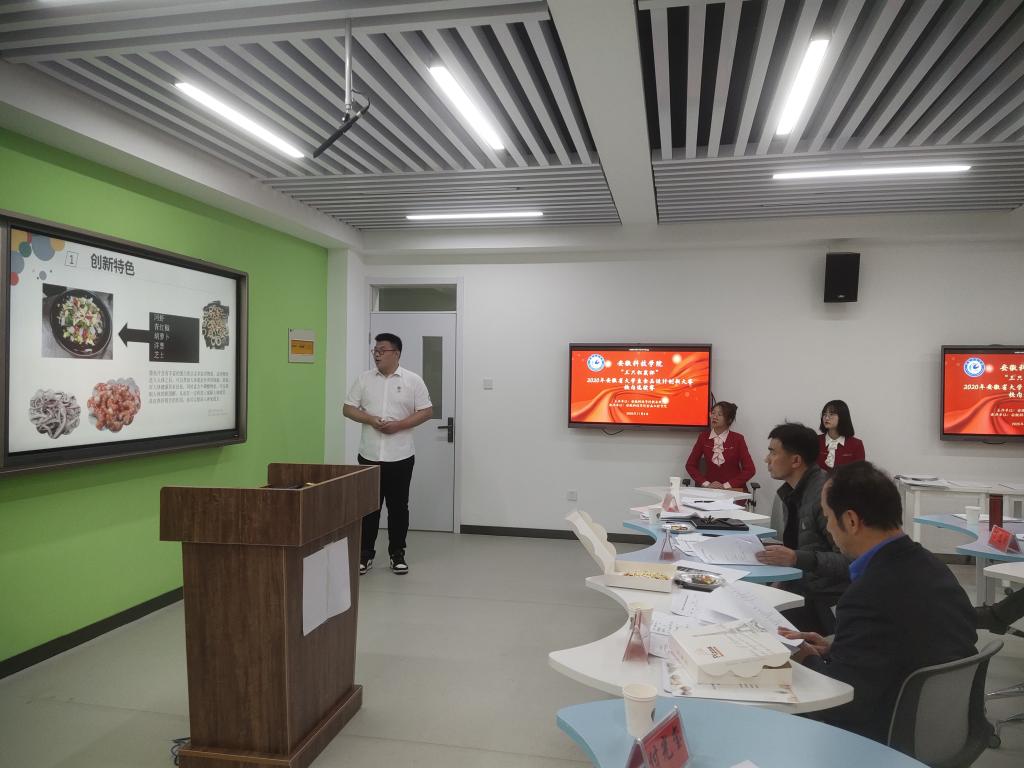 11月4日下午,由安徽科技学院教务处主办,食品工程学院承办的“三只松鼠杯”2020年安徽省大学生食品设计创新大赛校内选拔赛于求知楼B座智慧教室303顺利举办。安徽科技学院教务处实践教学科科长宛传平、食品工程学院党总支书记付光玺、食品工程学院副院长杜传来、食品工程学院教授李先保、食品营养与安全系主任桑宏庆、食品工程学院副教授丁志刚、食品工程学院副教授杨剑婷出席此次大赛并担任评委。