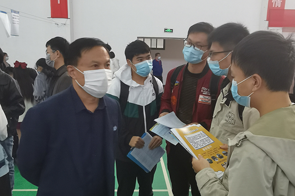 招聘会现场气氛火热、秩序井然,同学们佩戴口罩,携带简历等材料,在各用人单位展位前,就未来就业岗位、工作内容、发展空间、薪资待遇等问题,与招聘工作人员进行交流互动,向有意向的企业投递求职简历,并积极参加现场面试。