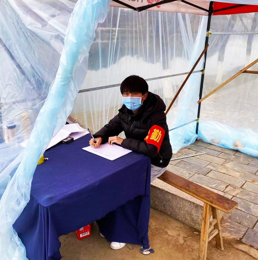 郭伟,食品质量与安全172班学生。作为一名退伍大学生,面对突如而来的疫情,义无反顾的来到当地社区办公室,向忙的不可开交的干部表明了来意,开始了他的志愿者工作,排查过往的的车辆、测量人员体温、登记车牌等等。郭伟表示:“疫情大考验中,还有无数像我一样的基层志愿者,我们应该向奋战在一线的医疗服务人员致敬,向党的坚强领导致敬,在今后的日子里我也会继续奉献自己的微薄之力,为社会和国家做贡献。”