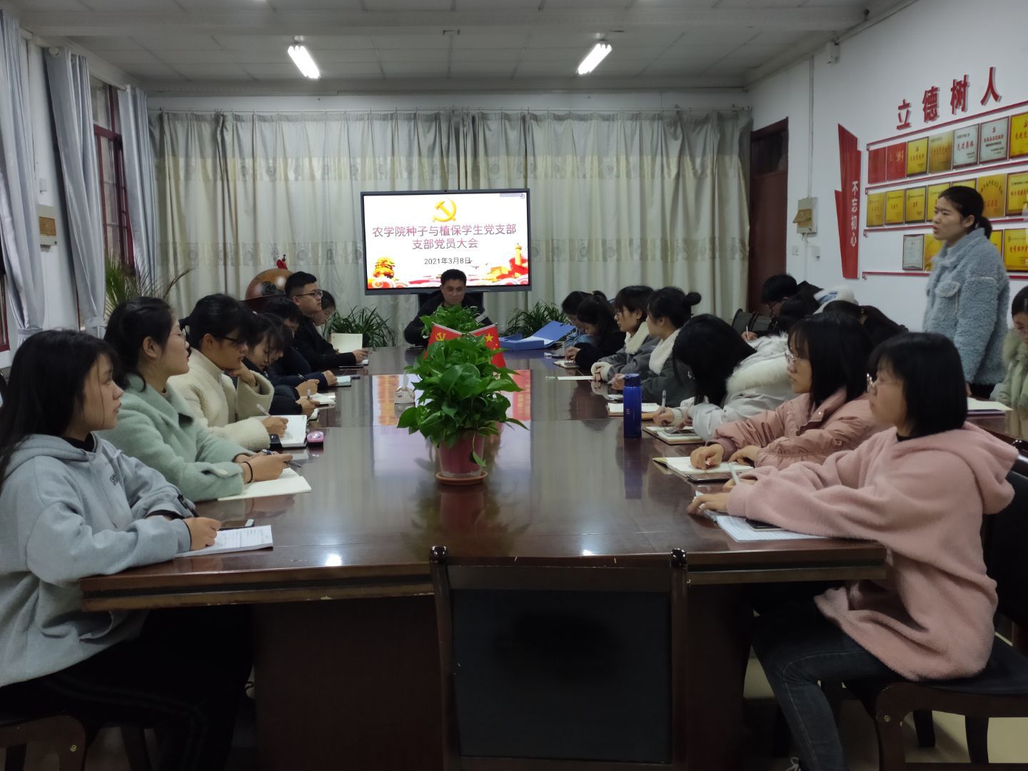 3月8日下午,种子与植保学生党支部在农学院会议室召开2020年度组织生活会以及民主评议党员大会。农学院党委委员、党委副书记张轶辉,党支部全体党员参加会议。会议由党支部书记汪道兵主持。