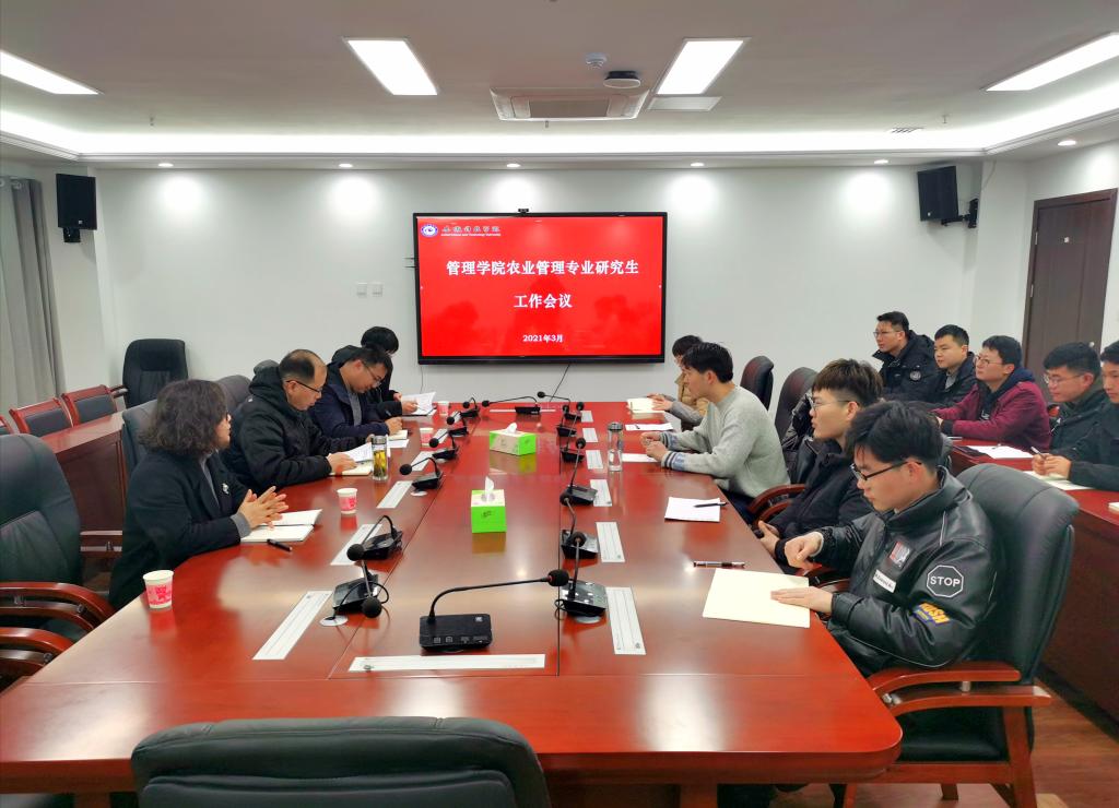 3月11日上午,管理学院在龙湖校区西辅楼416会议室召开农业管理专业研究生工作会议。管理学院党委书记丁景良、副院长郑谦出席会议,2020级农业管理领域全体研究生参加了会议,会议由郑谦主持。