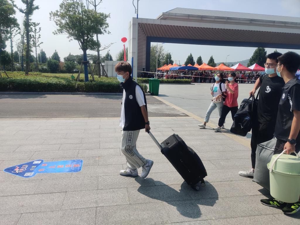学院迎新处,王竑博一直忙碌着,给前来报到的同学喷消毒水、指引道路、搬运行李,他顾不上休息,一心只想服务同学。身着电气与电子工程学院志愿者服装的他,将自己身影留在了迎新点的各个角落。谈及如何想到去做一名新生志愿者时,“其实没有想太多,看着学长学姐为了帮助我们不辞辛劳,忙前忙后,我就想我也要做点什么。”王竑博如是说。抱着这样的想法,王竑博不顾十几个小时旅程的疲惫,按捺着初来大学校园时心里的兴奋,放下行李,他就投入到了志愿服务工作中,他用最朴实的行动,表达对学长学姐的诚挚谢意。