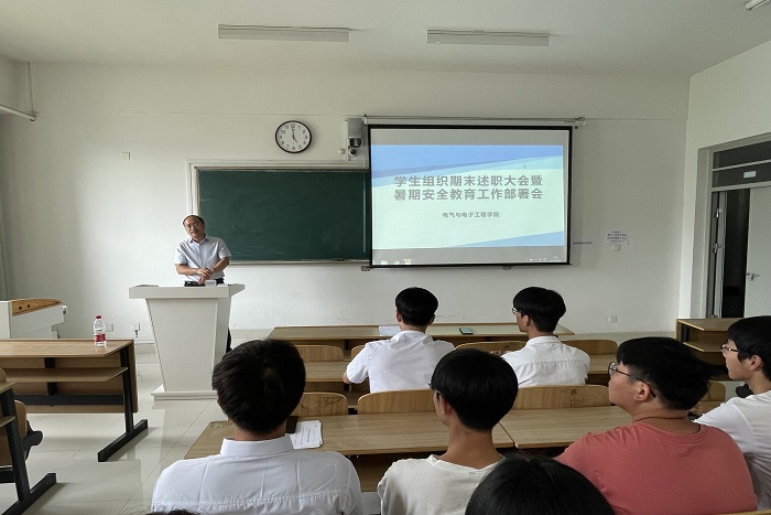 6月29日下午,电气与电子工程学院于致知楼C206召开学生组织干部期末述职大会暨暑期安全教育工作部署会。