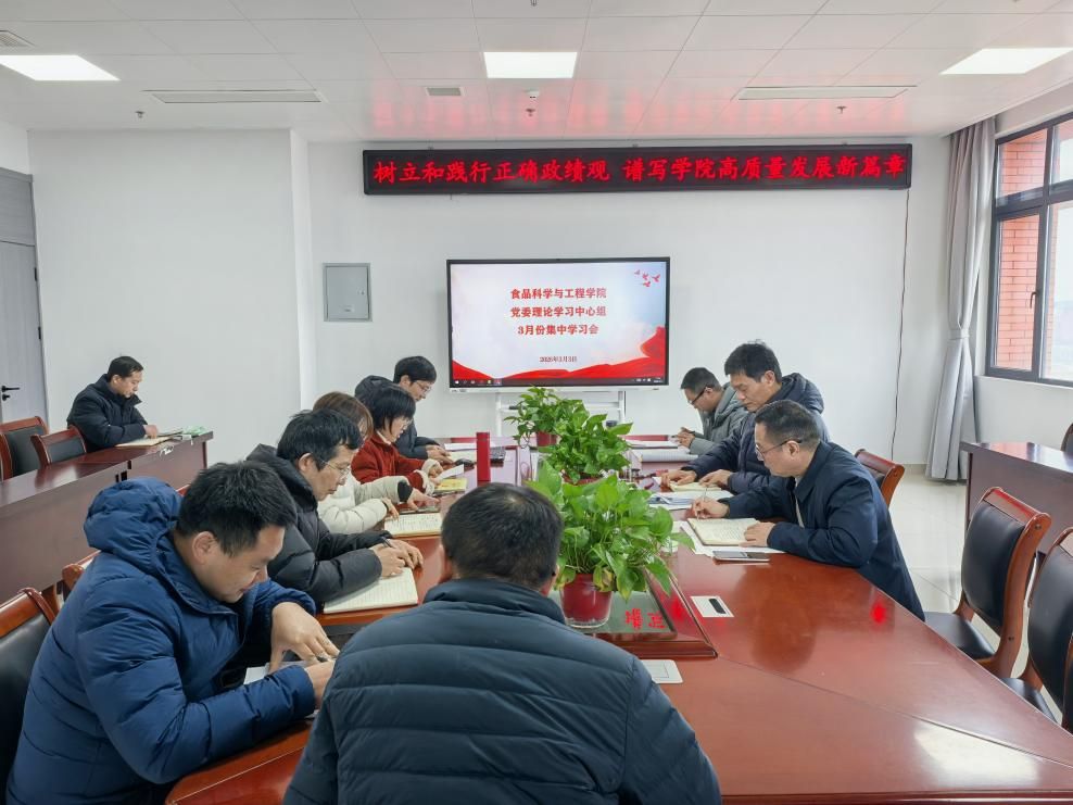 3月3日上午,食品科学与工程学院召开党委理论学习中心组(扩大)集中学习会,专题部署树立和践行正确政绩观学习教育工作,会议由学院党委书记付光玺主持,学院班子成员、党委委员、纪委委员、各党支部书记参加会议。