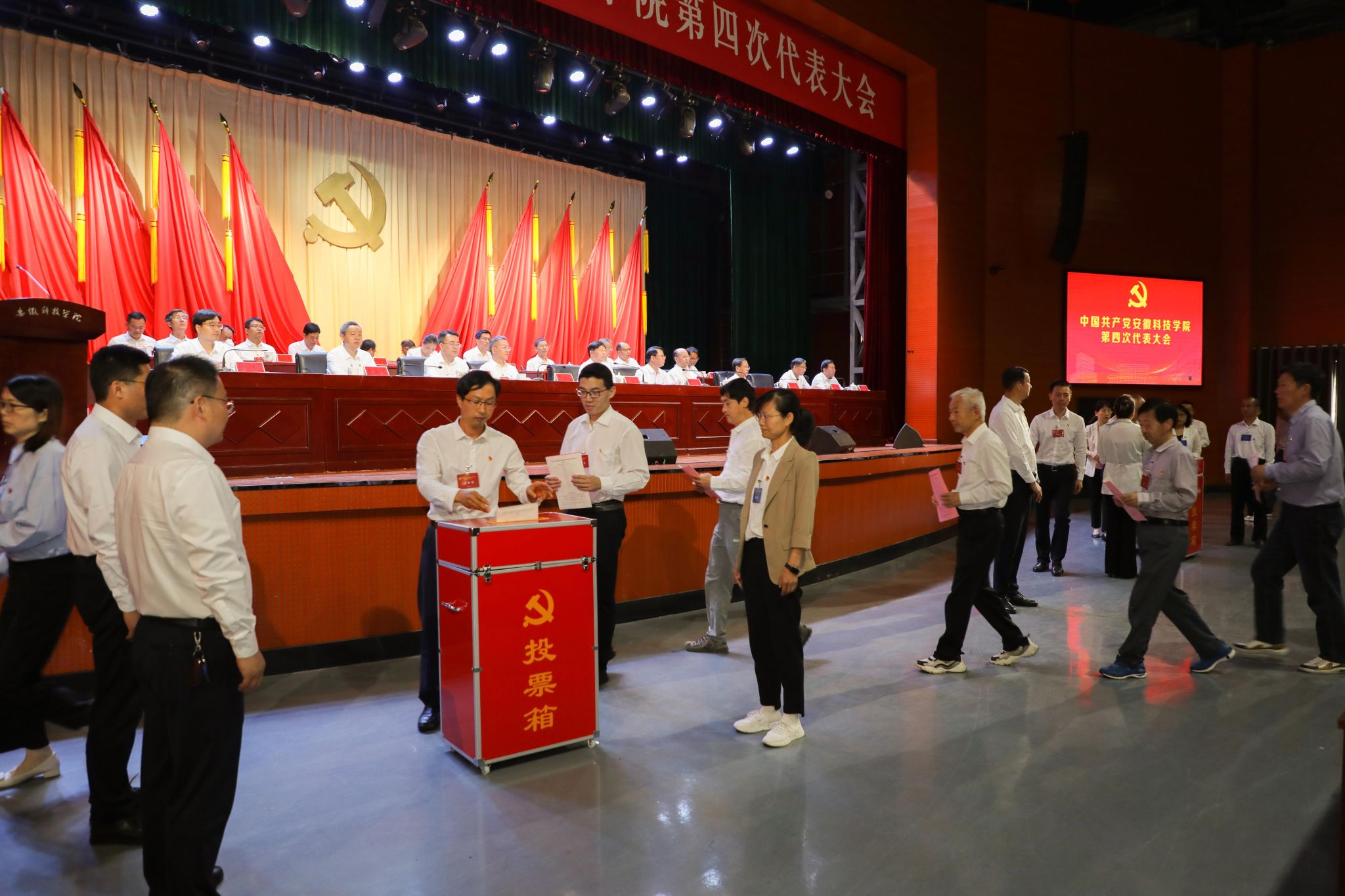大会选举产生了新一届党委委员和纪委委员。中国共产党安徽科技学院第四届委员会委员共9名(按姓氏笔画为序):王玉和、王孝义、李升和、时伟、何永勇、赵伟峰、钱锐、曹付忠、彭庆刚。中国共产党安徽科技学院第四届纪律检查委员会委员共7名(按姓氏笔画为序):卢星辰、朱立政、杜小明、张开宝、张宏喜、张德化、彭庆刚。