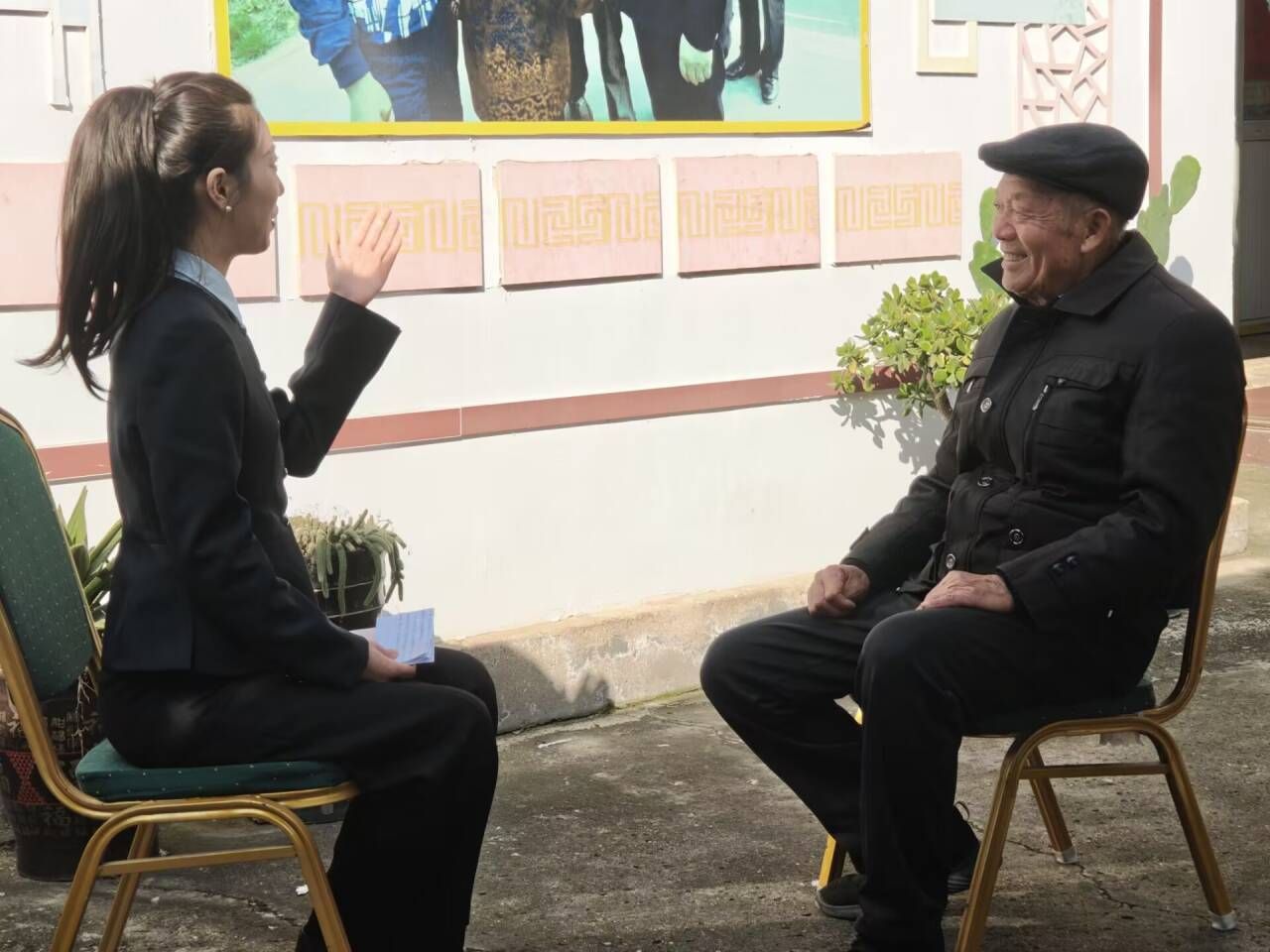 本次口述史录制摒弃了简单的历史回顾,转而采用结构化的访谈方式,引导三位亲历者围绕“过去、现在、未来”三个时空维度,展开层次分明的叙述。访谈人黄文盈老师通过深入提问,挖掘了亲历者在时代关口做出生死抉择的细节与动因,更将视角延伸至当下,客观记录与解读小岗村在新时代背景下从农业生产到乡村面貌的深刻变迁与发展成就。同时,访谈还前瞻性地征集了老人们基于毕生阅历对中国乡村未来图景的展望与对青年一代的殷切寄语,从而完成了一次从抢救历史记忆到汇聚前行力量的完整叙事。中共党史党建专业2025级硕士研究生实地开展史料记录、录音整理工作,确保口述史料的完整性。同时,通过与改革先驱的近距离交流,直观感受那段敢闯敢试、勇毅前行的奋斗岁月。