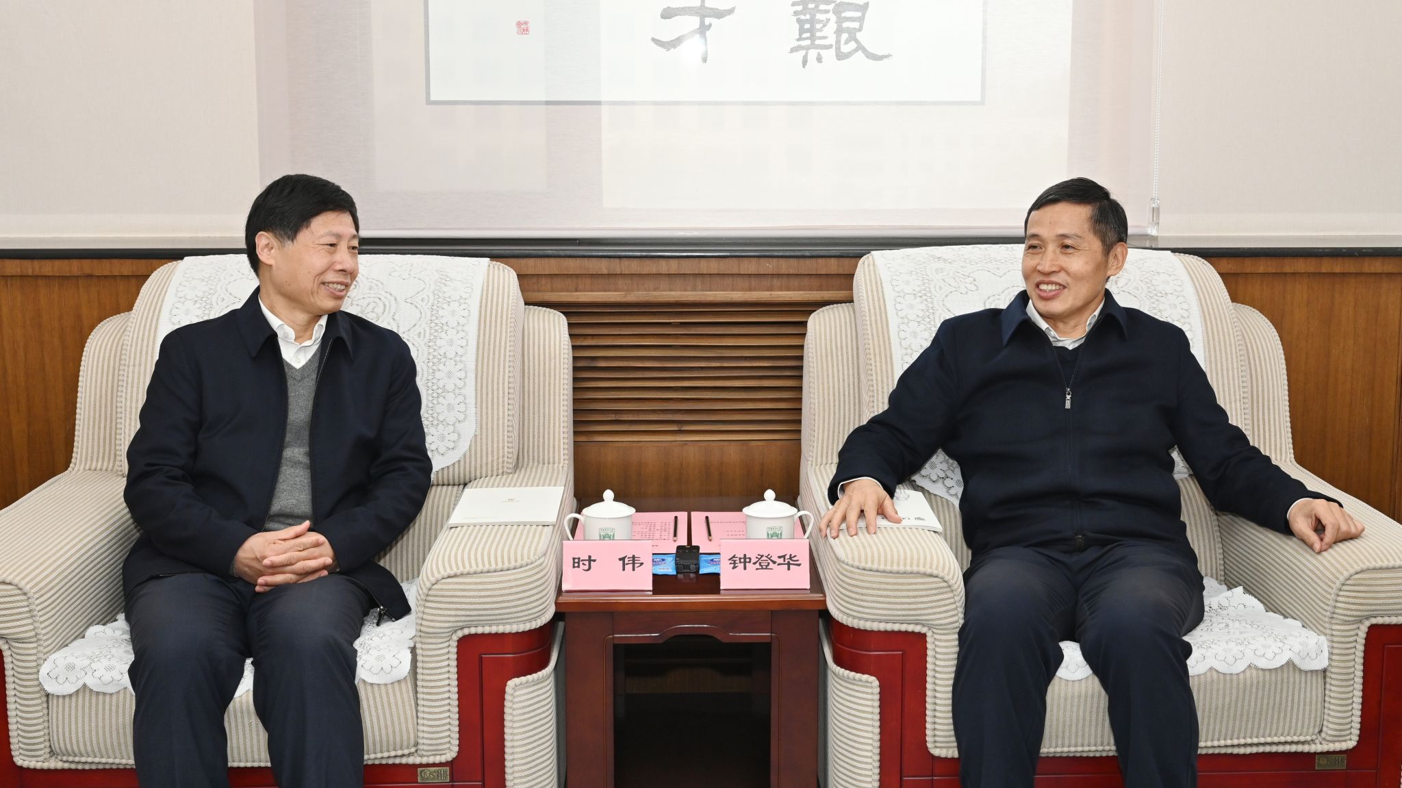 钟登华对时伟一行的到来表示热烈欢迎,并介绍了中国农业大学在人才培养、科技创新、社会服务等领域的发展成果与特色优势。他指出,两校同为农业领域高校,具有广泛的合作基础和共同的发展愿景,希望双方进一步拓展合作交流的深度与广度,充分发挥各自优势,在强国建设、民族复兴伟业中携手贡献涉农高校力量。