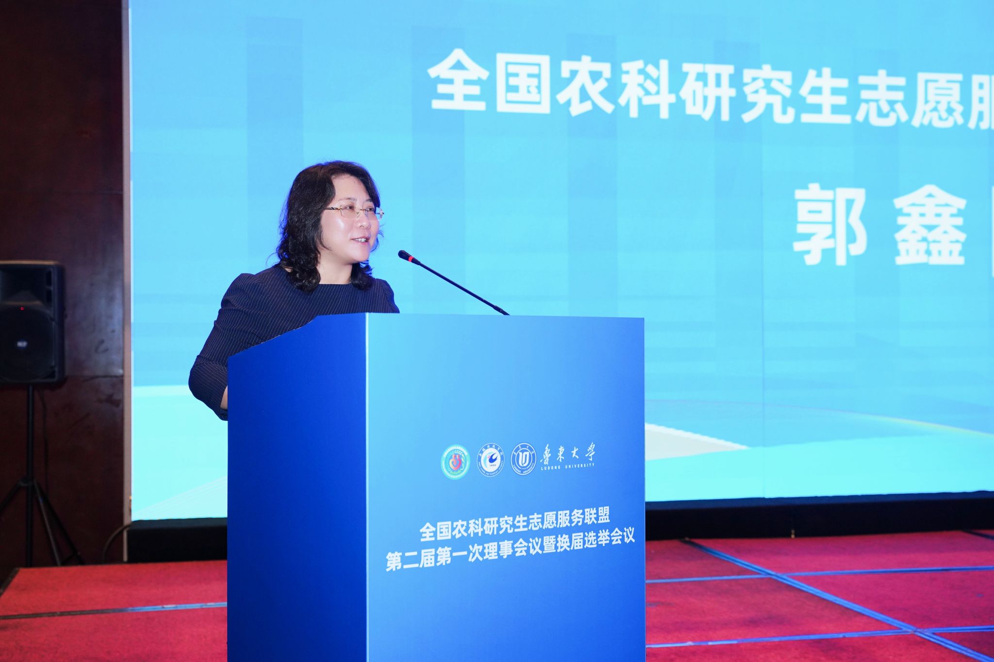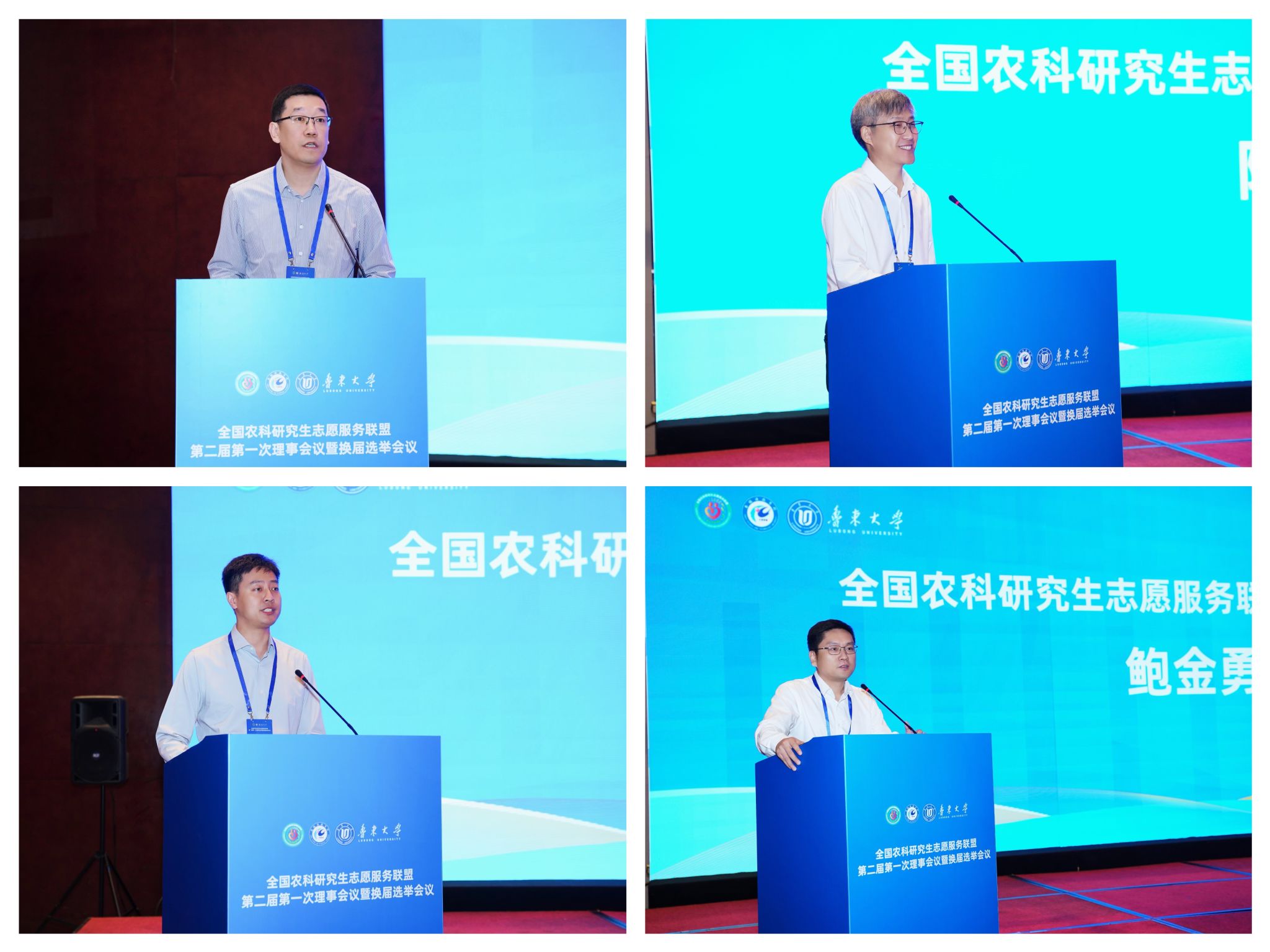 李升和代表联盟第一届理事会作工作报告。他指出,联盟自成立以来,始终以“志愿服务助力乡村振兴,青年成长开创美好未来”为宗旨,为农科研究生投身“三农”事业搭建了坚实平台,客观剖析发展中的不足,为新一届理事会工作提供了重要参考。他在就职发言中承诺,将带领新一届理事会坚守联盟初心,通过整合资源、创新举措,推动志愿服务工作提质增效。4位轮值主席依次进行了表态发言,分享对联盟发展的规划与担当。鲁东大学研究生院院长、轮值主席亓朋在大会总结中强调,本次会议既是规范有序的换届大会,更是凝聚共识、谋划未来的动员大会,为联盟下一步发展奠定了坚实基础。