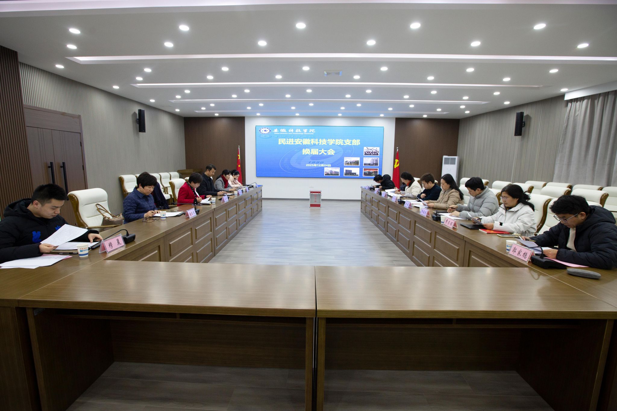 12月24日下午,民进安徽科技学院支部换届大会在凤阳校区图书馆B多功能厅召开。蚌埠市政协副主席、民进蚌埠市委会主委宋静,安徽科技学院党委宣传部、党委统战部常务副部长,党委学工部、学生处处长黄立义,民进蚌埠市委会专职副主委潘吉红等参加会议。会议由民进安徽科技学院支部主委张菊主持。