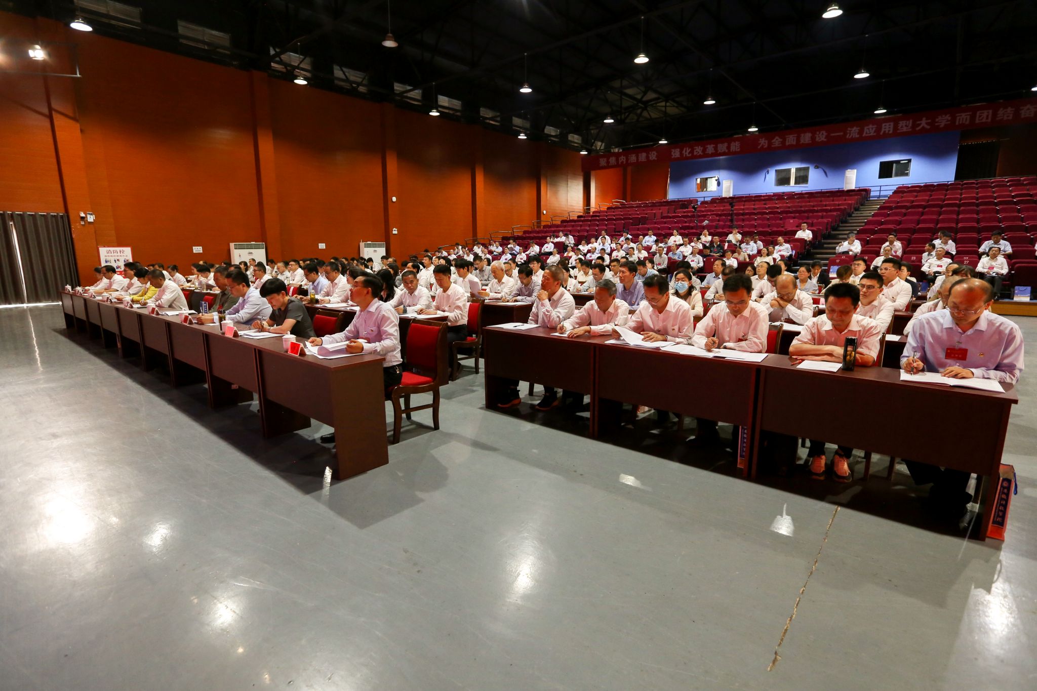 大会的主题是:高举中国特色社会主义伟大旗帜,以习近平新时代中国特色社会主义思想为指导,深入学习贯彻党的二十大和二十届二中、三中全会精神,深入学习贯彻全国全省教育大会精神和省委、省政府部署要求,全面贯彻党的教育方针,落实立德树人根本任务,聚焦内涵建设,强化改革赋能,推进高质量发展,为全面建设特色鲜明、优势突出的现代化全国一流应用型大学而团结奋斗。
