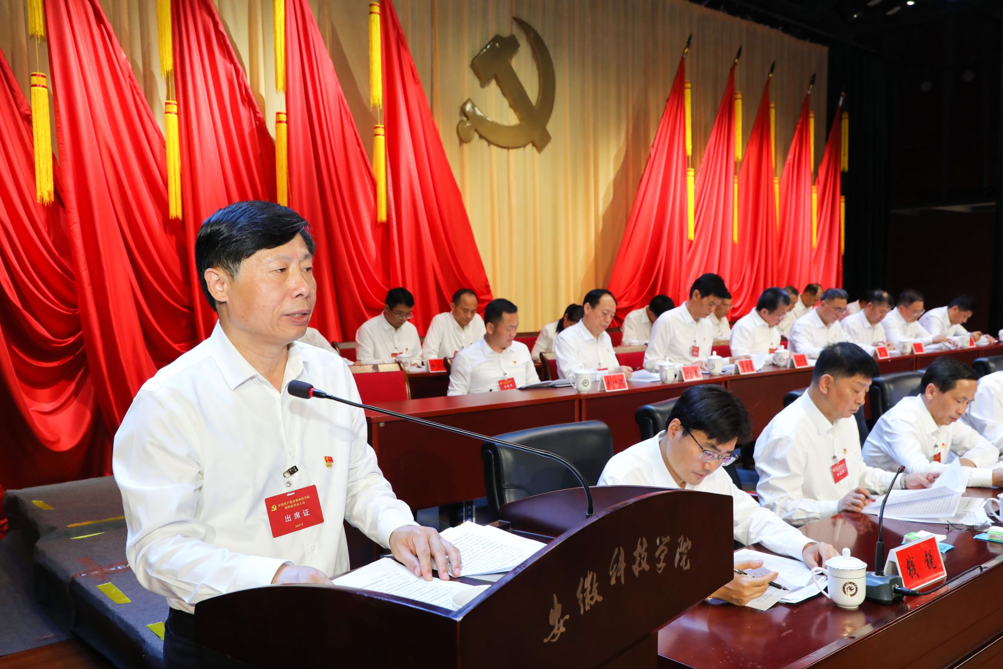 5月27日上午,中国共产党安徽科技学院第四次代表大会在凤阳校区大学生活动中心隆重召开。安徽省委教育工委委员、省教育厅副厅长徐静平,滁州市委副书记金力,安徽省委教育工委组织干部处副处长杨南成,校领导时伟、李升和、曹付忠、王孝义、赵伟峰、王玉和、彭庆刚出席会议。学校的老领导,民主党派代表和有关方面代表等,不是代表的处级干部作为特邀人员、列席人员参加大会。