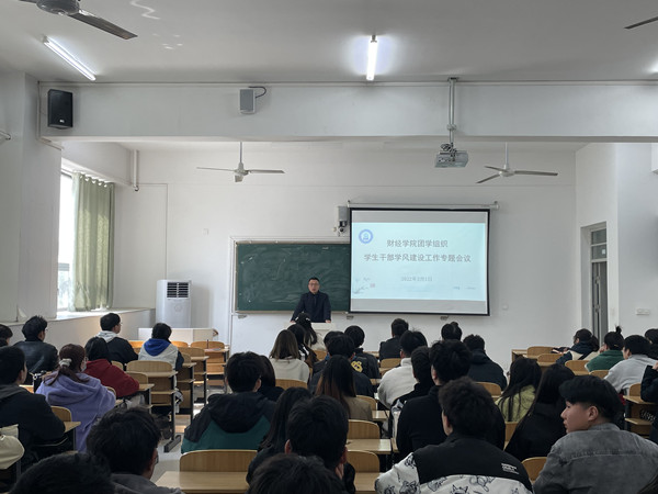 为加强学院学风建设,3月1日,财经学院在致知楼C103召开团学组织学生干部学风建设工作专题会议。学院党委副书记、纪委书记耿广汉,专职辅导员季昌文及学院各团学组织主要学生干部参加会议。会议由学院团委书记薛枫主持。