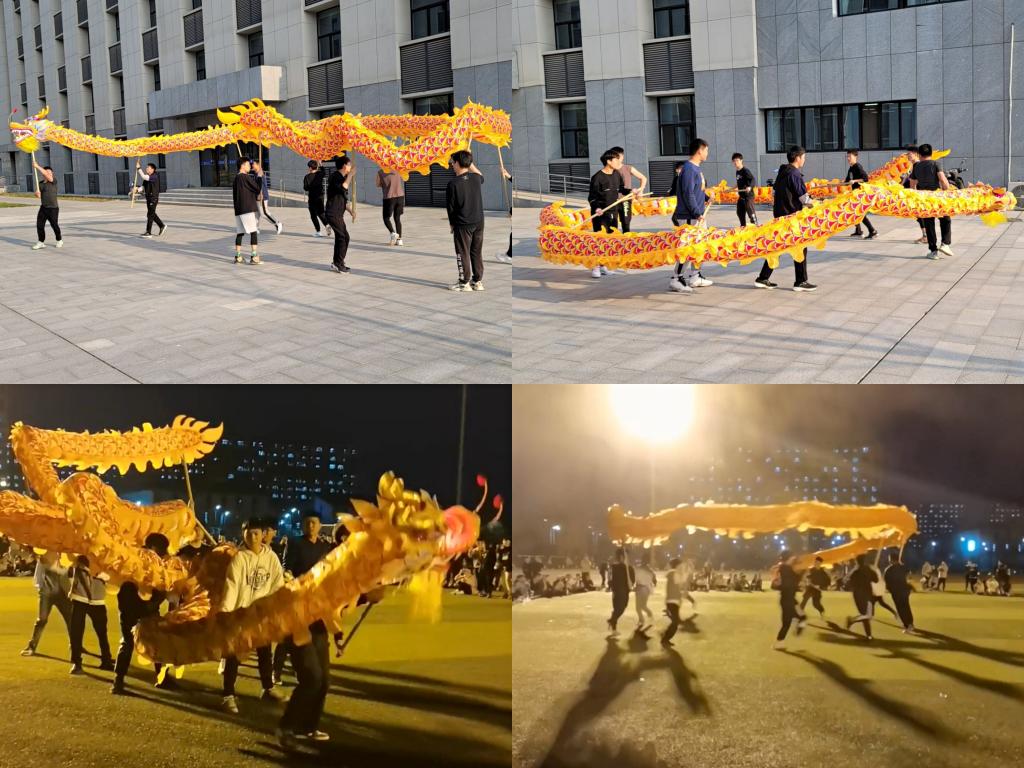 金龙飞舞,绽放青春!舞龙队由各班级同学自愿报名、精心挑选后组成,利用课余时间开展训练。清明假期,学生无课,正是训练好时光,训练场上,舞龙队员们奋力舞动着金色龙头、龙身、龙尾,不断地展现“金龙翻身”“金龙穿衣”“八字舞龙”“龙飞起伏”“跳龙摇船”等动作姿势,一个个精彩的动作表演,为场下的观众来带一场极具冲击力地视觉盛宴。