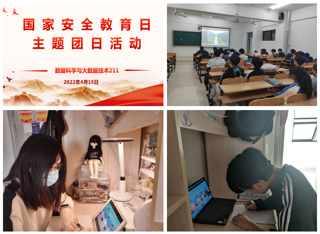 4月15日-17日,学院各团支部纷纷开展以国家安全教育为主题的团日活动。组织观看《树牢总体国家安全观,感悟新时代国家安全成就,为迎接党的二十大胜利召开营造良好氛围》线上公开课的方式,深入学习了总体国家安全观的核心要义、国家安全体系构成、“十个坚持”、国家安全法律以及公民维护祖国的安全、荣誉和利益的基本义务,提升维护国家安全的自觉性和主动性。