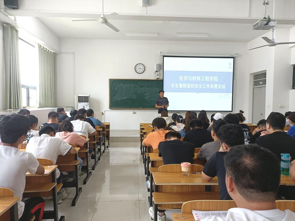 为做好2022年暑期留校学生管理服务工作,确保学生暑期留校安全,化学与材料工程学院于6月13日在致知楼B109教室召开暑期留校安全工作会议。院党委副书记张炎、党政办主任许妮及2019级全体暑期留校学生参会。会议由辅导员李潮升主持。