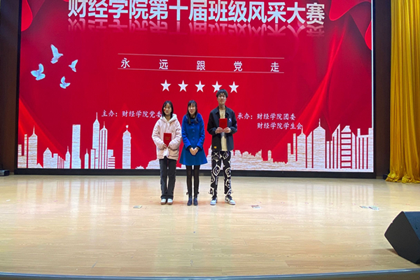在舞台展示环节,各班级紧紧围绕“永远跟党走”这一主题,通过合唱、舞台剧、朗诵、舞蹈等多种形式回顾了党的百年光辉历程,颂扬党的丰功伟绩,唱响新时代主旋律,展现财经学子永远跟党走,同心共筑中国梦的精神风貌。如财管203班的《党旗飘扬》、会计201班的《初心如磐跟党走》、金工202班的《青春心向党》彰显着信仰之美和真理力量,表达出对党的感恩之情;国贸201班的《赞赞新时代》、会计203班《以梦为马,不负韶华》和财管201班的《青春不散场》展现出财经学子对新时代的高歌和未来的展望;财管202班的《英雄之美,寸土寸心》体现了为国家强盛、民族兴旺而不懈奋斗的精神动力;财管204班的《明天会更好》以歌舞形式绽放美好,憧憬未来;终场的竹笛古筝合奏《双面燕询》以及合奏《钢铁洪流进行曲》激励着财经学子们努力奋斗,奋勇前进。最终金工201、202班凭借出色表现获得一等奖。