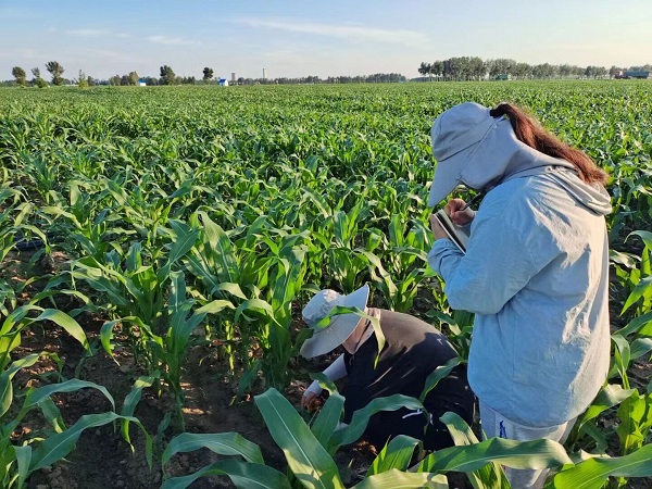 在接下来的一段时间,实践团每天实地测量玉米叶面积,进行数据整理分析,排通管道进行浇水施肥,对玉米叶片绒毛情况进行取样并拍照记录。在课余时间,师兄师姐们还向实践团分享了他们的学习生活以及考研经验,为实践团成员在学习方面存在的问题解答疑惑,实践活动受益良多,收获满满。