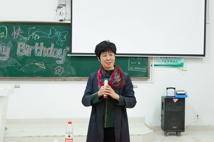 陶漫在致辞中代表学院为“小寿星”们送上生日祝福,她寄语同学们,在人生成长的历程中要学会感恩,感恩父母、感恩人生历程中关心关爱自己的每一个人;要学会感动,懂得对生命的感动。要努力培养自己的责任感,使自己成为一个对家庭对社会有用的人。希望通过此次活动,同学们精神更加丰盈、身心更加健康、人格更加完善。今天我们以这种特殊的形式在特殊的日子里来温暖大家,祝大家生日快乐,在安科学有所成。