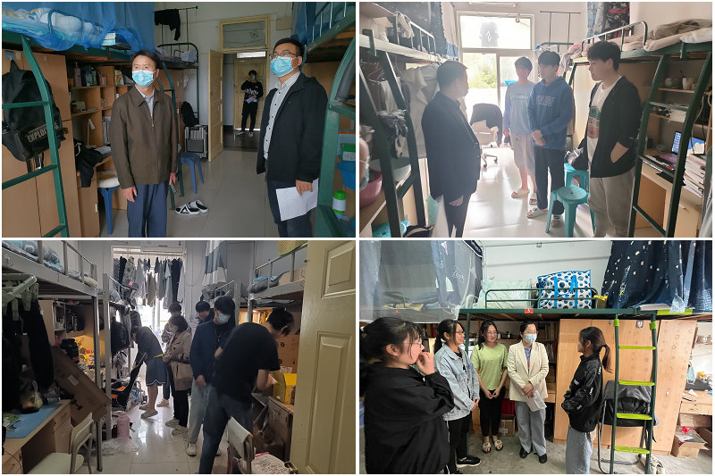4月17日下午,生命与健康科学学院党政领导和全体专兼职辅导员携宿舍安全卫生检查小组成员深入学生宿舍进行安全卫生检查工作,排查宿舍安全隐患,与学生深入交流,了解学生思想动态。