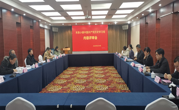 2月18日下午,禾泉小镇中国共产党历史学习馆内容评审会在安徽禾泉农庄生态农业有限公司举行。由蚌埠市委党校、蚌埠市社科联、市委党史和地方志研究室、禹会区委宣传部、涂山风景区党工委等7位专家组成评审专家组审核了项目内容。马克思主义学院课题组负责人李红艳、项目组成员黄钦海老师参加了评审会。