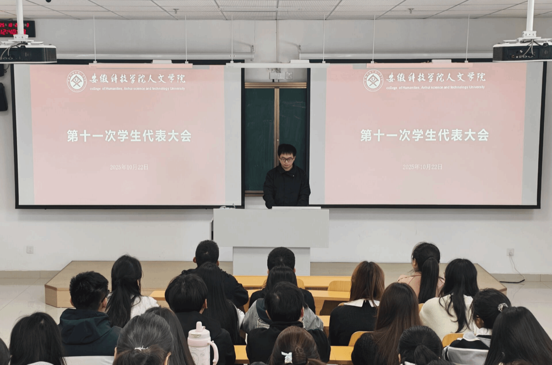 10月22日中午,人文学院在学思楼4号楼207教室召开第十一次学生代表大会。学院党委副书记李沙娜,学院有关教师、学生会主席团成员及学生代表参加。