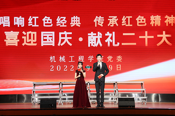 在党的二十大即将胜利召开之际,为重温红色经典、传承红色基因,高扬爱国主义主旋律,丰富校园文化生活,增强2022级新生班级凝聚力,为党的二十大胜利召开营造浓厚氛围,2022年9月29日晚,机械工程学院在凤阳校区大学生活动中心举办“喜迎国庆 献礼二十大”红歌比赛,机械工程学院正处级组织员张严政,党委副书记、纪委书记张程,副处级辅导员开金苗出席比赛,2022级17个学生班级参加比赛。本次比赛由孟凡生、魏伟奇两位辅导员老师和两届学生会主席团的5位同学担任评委。