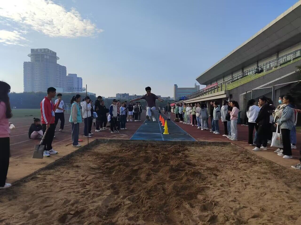 指令枪响,少年奋进,每一滴洒落的汗水都在这一刻化作心中的骄傲。齐并进,共成长,红色跑道赛出健将风格,青春风采。本次运动会,人文学子踊跃参加各项活动,在田径、跳远、篮球、跳高、仰卧起坐、跳高比赛中全力以赴,力求突破。奔跑过程中,不可避免的出现运动员意外摔倒的情况,但他们迅速爬起,奋力追赶,赢得了人文学子的掌声,体现了当代大学生昂扬向上、不惧困难的有为形象。在运动会成功举办的背后,离不开这样的一群人,他们身着薄荷绿的志愿者服装。奔波于各个比赛地点,或是维持秩序,或是忙于拍摄。身为志愿者的他们,虽不起眼,但也用实际行动为同学们服务,做到了发一份光。