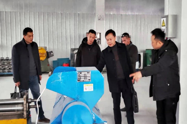 在安徽皖新分子材料有限公司,陈丰一行在企业负责人的陪同下,深入企业生产一线进行考察调研,了解企业发展面临的问题,寻求产学研合作的生长点和渠道,重点就瓜蒌废弃物资源化利用、块根挖掘装备、企业行业标准构建、联合项目申报、本科生和研究生实习实训基地建设等相关事项进行了深入探讨。