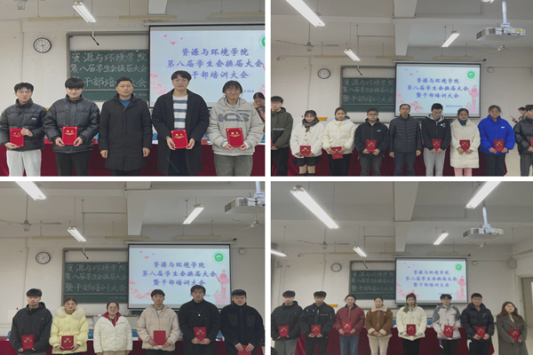 11月30日中午,资源届大与环境学院于新知楼B203召开第八届学生会换会暨干部培训大会。党委副书记沈树周、党政办主任吴国良、团委副书记杨小晗、学生会指导老师王丽萍、第七届学生会主席团成员及各个部门负责人受邀出席本次会议,第八届学生会全体成员参加本次大会,会议由王丽萍主持。