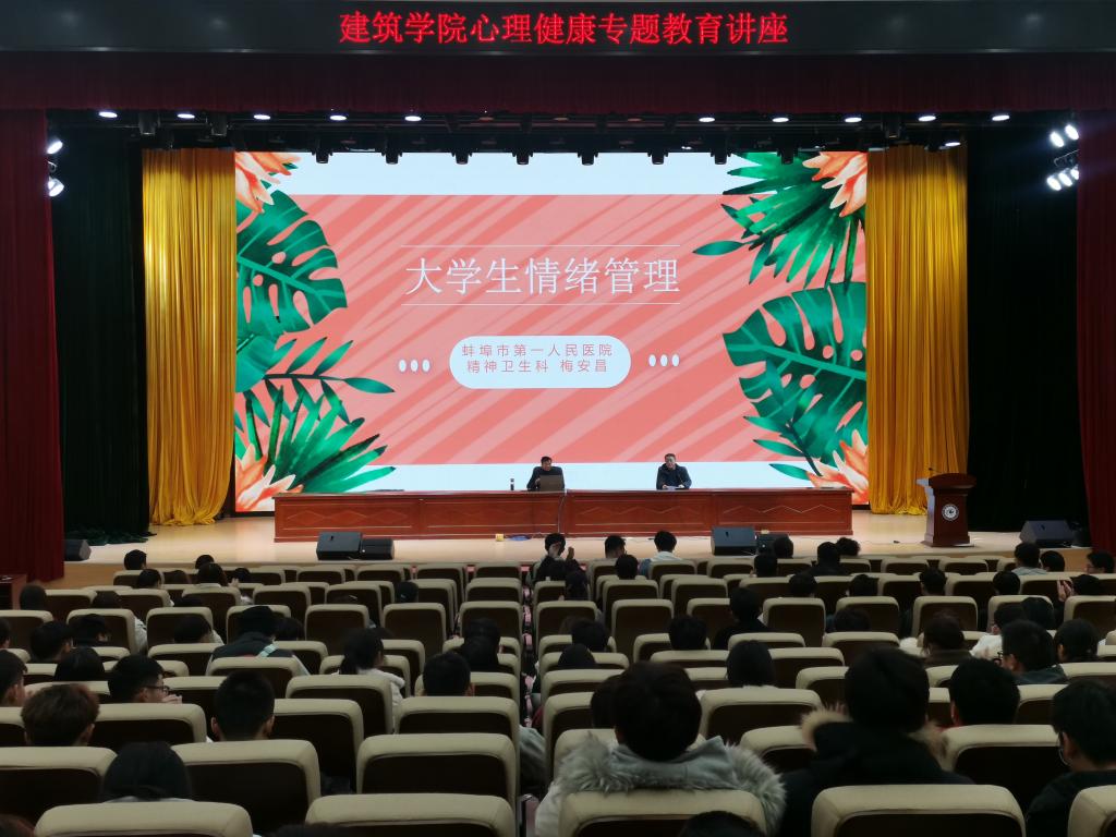 仪式结束后,双方共同参观了建筑学院学生作品陈列室、建筑模型展示室等;蚌一院精神卫生科主任梅安昌还为同学们作了一场精彩的大学生情绪管理辅导报告。(特约通讯员:吴婷婷 审核:谢宜勤 编辑:张威)