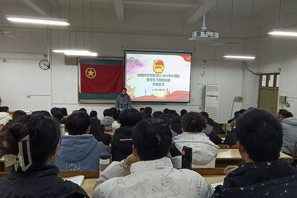 为深入学习贯彻党的二十大精神和习近平总书记关于青年工作的重要论述,引导广大学生骨干增强政治素质、坚定理想信念、提高政策理论水平、优化能力结构,11月30日下午,动物科学学院2022-2023学年团校暨学生干部培训班隆重开班,动物科学学院党委书记姚勇应邀给培训班学员授课,来自学院74名学生干部参加培训。