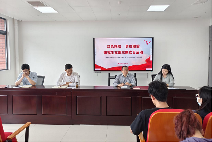 5月15日下午,食品科学与工程学院在515会议室举行“红色领航 勇往职前”研究生党支部主题党日暨就业工作座谈会。学院党委领导、研究生辅导员及20余名毕业班研究生党员、学生干部共话职业规划,共谋职业发展。