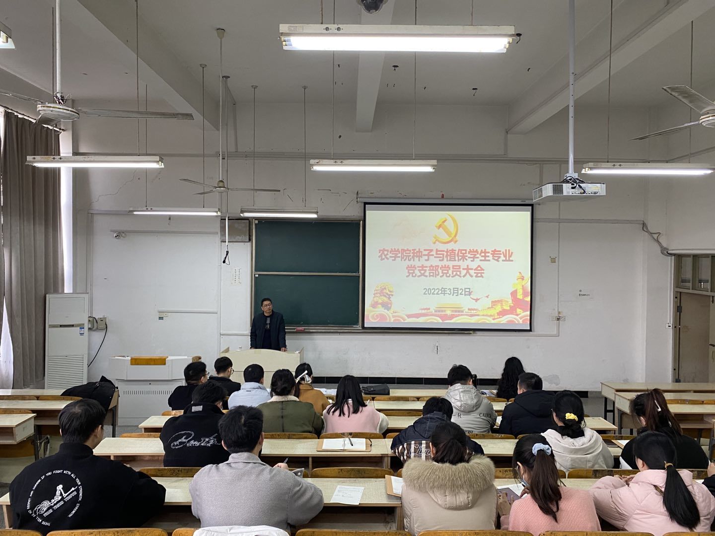 为深入学习贯彻习近平新时代中国特色社会主义思想和党的十九届六中全会精神,不断巩固拓展党史学习教育成果,3月2日,种子与植保专业学生党支部在求知楼A203召开2021年度组织生活会和民主评议党员大会。农学院党委副书记、纪委书记张轶辉到会指导,支部全体党员参加会议。会议由党支部书记汪道兵主持。