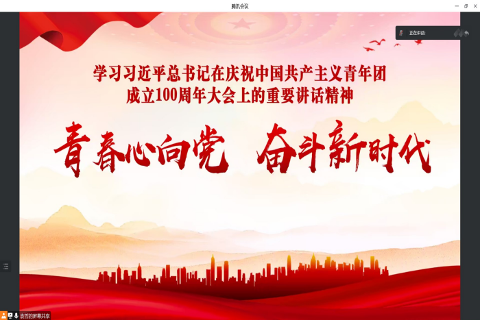 学院团委兼职副书记、院学生会执行主席袁哲领学了习近平总书记在庆祝中国共产主义青年团成立100周年大会上的重要讲话精神,阐释了青年应当厚植爱国主义情怀,把爱国情、强国志、报国行自觉融入坚持和发展中国特色社会主义事业、建设社会主义现代化强国的奋斗征程中。