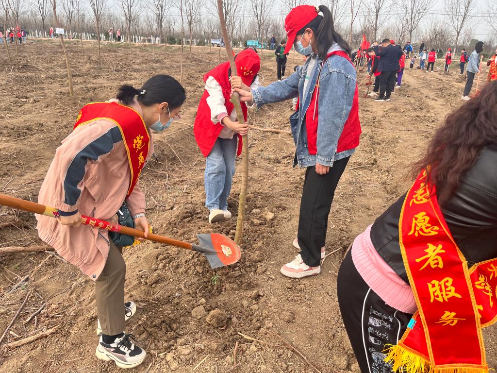 随后,志愿者们穿上志愿者马甲分成两组,带着树苗、铁锹等工具,来到划定的植树区域,在林业技术人员的指导下,分工协作、共同配合。挖坑、扶苗、培土……各个环节衔接有序,他们把手中的一颗颗的树苗植入大地,同时也把热爱自然的希望植入了心中,为大地增添了更多的生命活力。经过近3小时的忙碌,百余棵树苗在春日下迎风挺立。