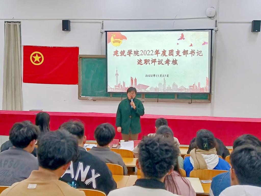 为进一步推动学院基层团组织“三力一度两保障”工作水平,加强团支部书记履职尽责能力,11月27日,建筑学院在敏行楼C102报告厅召开2022年度团支部书记述职评议考核。学院党委副书记谢宜勤,团委书记沈德艳、副书记阮怀思、武辉,团委委员,各团支部团干部、党员代表、团员青年代表参加。
