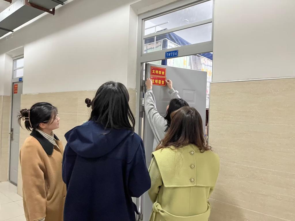 本次授牌活动共涵盖50间院级文明宿舍和103间党员宿舍。学院辅导员们在授牌活动过程中,对荣获院级“文明宿舍”的同学们表示祝贺,并围绕思想作风、卫生安全、宿舍生活、学习氛围等方面进行了热烈交谈,同时对大家的生活学习和未来规划提出了宝贵的建议和指导。在授牌“党员宿舍”的过程中,学院辅导员们殷切寄语学生党员锐意进取、砥砺前行、奋勇争先,希望大家亮身份、做承诺、展作为,成为政治素养、学风建设、宿舍卫生等各方面的标杆,带动周边宿舍和周边群体共同进步,发挥好引领示范作用。学生党员们纷纷表示,将坚定理想信念,牢记肩上责任,做好榜样表率,不断提高自身政治素养,发挥模范带头作用。