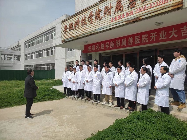 为了进一步加强实践教学基地建设,在学校的大力支持和前期认真筹备下,2023年3月27日安徽科技学院教学动物医院(附属兽医院)正式开业,动物科学学院党委书记姚勇,党委委员、副院长、兽医院院长贺绍君,兽医院副院长阮崇美博士及兽医院临床医生,动物养殖及疾病诊疗协会同学参加了开业仪式。