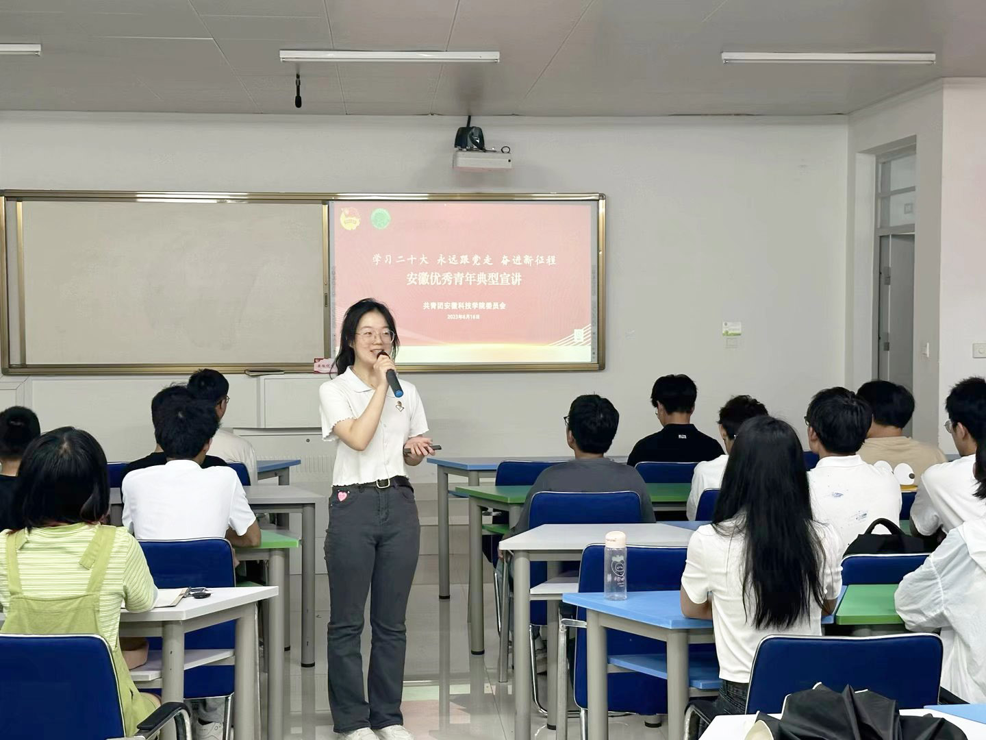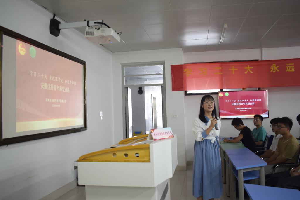 为充分发挥青年典型模范带头作用,营造学习安徽省各级青年五四奖章、“两红两优”等优秀青年典型事迹的浓厚氛围,进一步组织引导青年学生将党史团史理论学习与社会实践相结合,推动党的二十大精神、团的十九大精神进校园,6月16日至6月19日,安徽科技学院建筑学院“筑梦青年”院级重点宣讲团在校团委的统筹安排和建筑学院教师的专业指导下,按照全覆盖、广领域、多渠道的要求开展两场“学习二十大 永远跟党走 奋进新征程”宣讲活动。活动覆盖建筑学院青马学员、党员、入党积极分子、入团积极分子、受资助大学生等百余人。