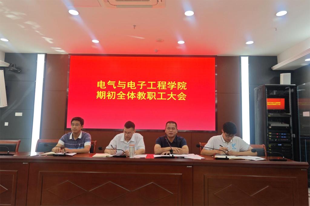 9月1日下午,电气与电子工程学院于西辅楼111会议室召开新学期全体教职工大会,学院党政领导及全体教职工参加了会议,会议由党委书记骆海邦主持。