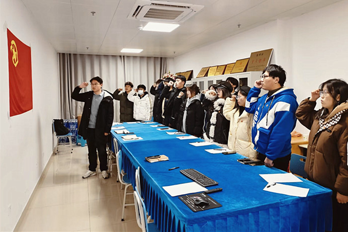 老团员代表、院学生会执行主席朱臻宇带领新团员庄严宣誓。新团员们逐一作了表态发言,表示将继续发扬共青团的优良传统,更加严格地要求自己,规范自己的一言一行,做有骨气、有志气、有底气的新时代青年。
