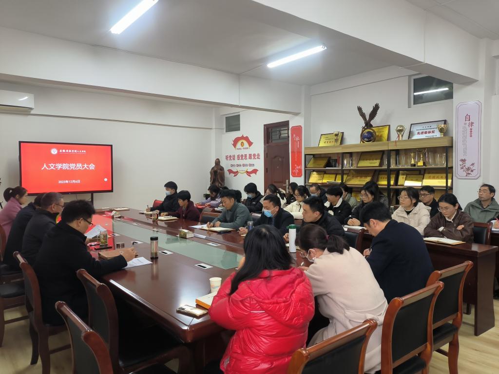 12月6日下午,人文学院党委在学知楼324会议室召开全体党员大会,补选中共安徽科技学院第三次代表大会代表,开展全面从严治党宣传教育,会议由正处级组织员张严政主持。