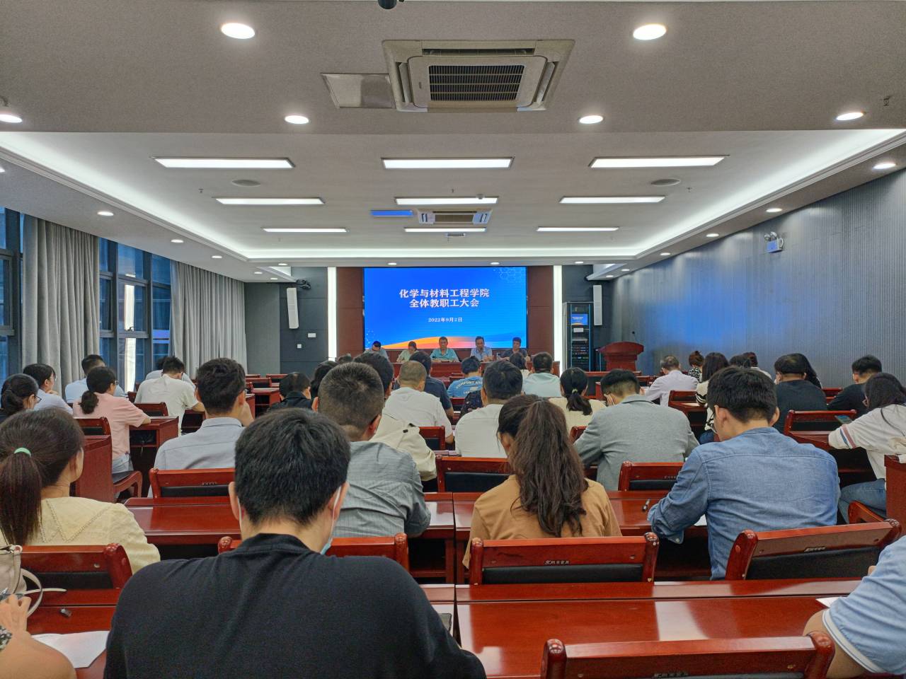 9月2日,化学与材料工程学院在西附楼111会议室召开全体教职工会议,传达学校会议精神,部署新学期工作。全体教职工参加会议,会议由学院党委书记黄树桥主持。