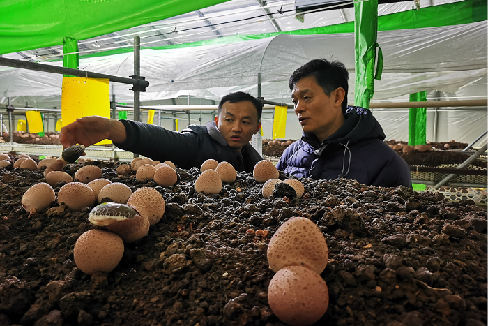 在公司董事长董建带领下,付光玺一行先后参观了虫草酒酿造基地,食药用菌科技产业园,走进蛹虫草及红托竹荪生长车间,详细了解食用菌种植方法、生长环境及营养价值,认真听取了董建对企业发展历程、管理体系、经营理念、产业布局、科研成果及产品销售等相关情况的介绍。