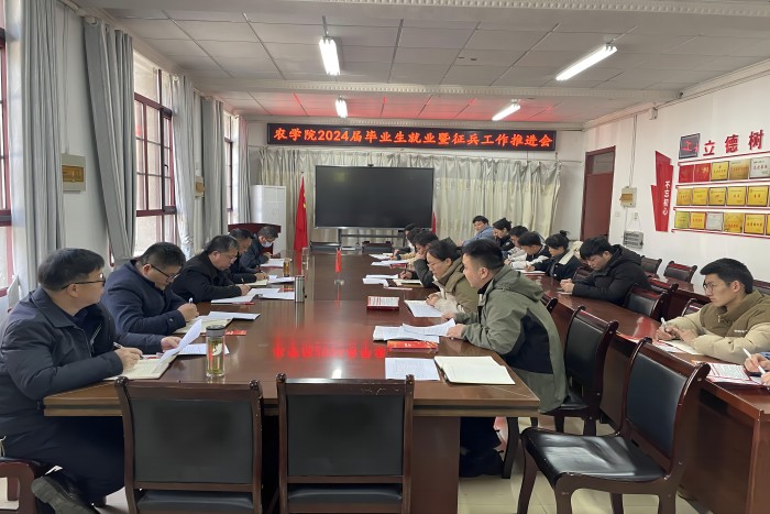 为扎实推进2024届毕业生就业创业及征兵工作,3月8日,农学院召开2024届毕业生就业创业及征兵工作推进会议。学院党政领导,专兼职辅导员、就业联系人及各毕业班就业联系人参加会议。会议由农学院党委书记何世潮主持。